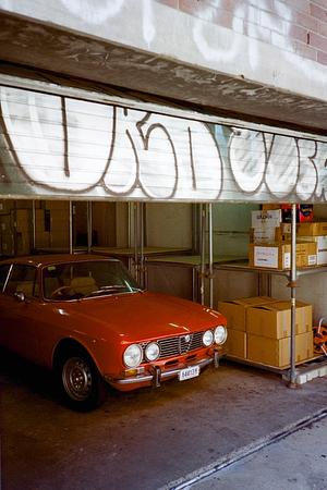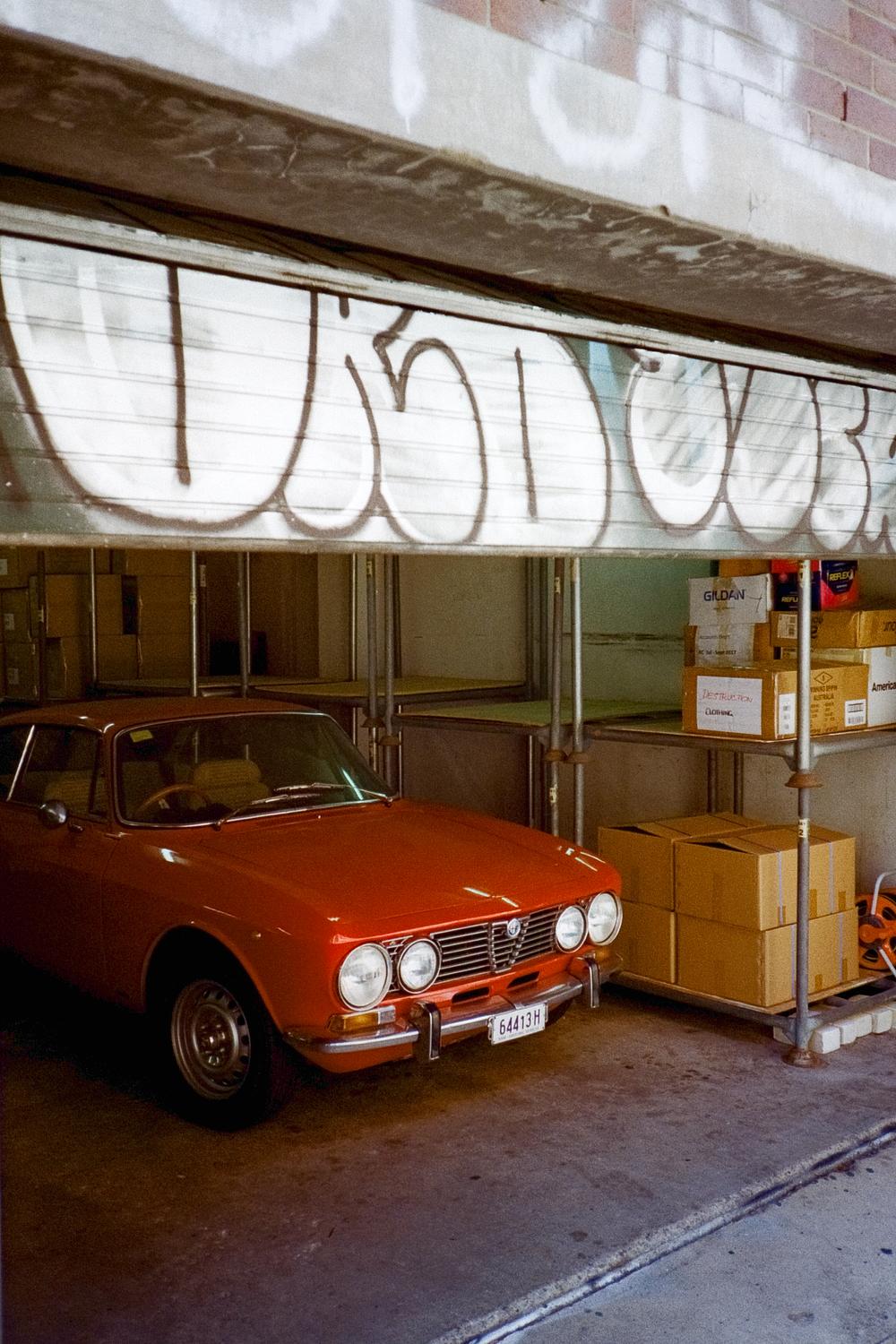 An Alfa Romeo in Surrey Hills, shot on Kodak Portra 400 film.